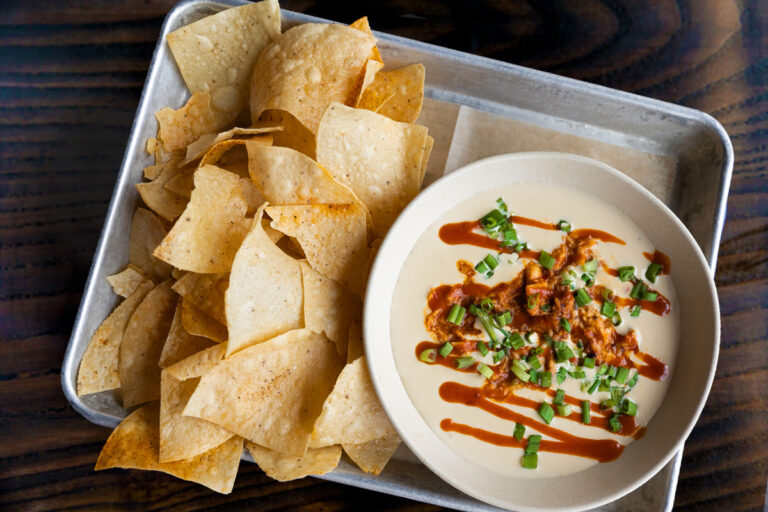 Crispy flour tortillas, smoked bean dip. spiced cheese, honey-sriracha lime chicken, pickled jalapeños, jalapeño ranch, pico de gallo, scallion
