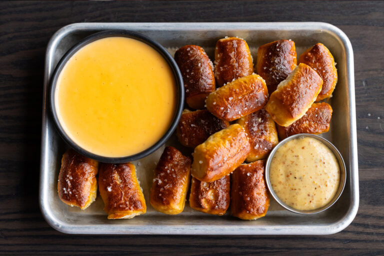 Hot, fluffy pretzel bites, served w/ side of beer cheese & mustard